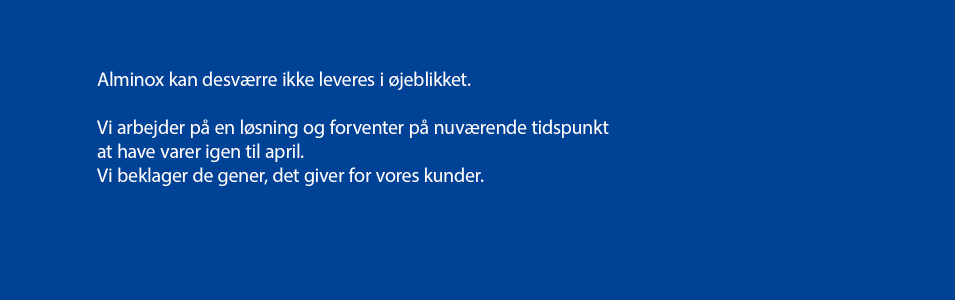 Produktinformation: Alminox® ”DAK”, tyggetabletter, 100 mg magnesiumoxid (tilsat som magnesiumhydroxid) / 500 mg aluminiumaminoacetat. Anvendelse: For megen mavesyre, halsbrand, svien i spiserøret (katar), sure opstød, svien og smerter i den øverste del af maven, mavesår, sår på tolvfingertarmen. Dosering: Voksne: For megen mavesyre, halsbrand, sure opstød og svien: 1-3 tyggetabletter efter behov. Mavesår, sår på tolvfingertarmen og katar i spiserøret: 3-5 tyggetabletter 1 og 3 timer efter hovedmåltider samt ved sengetid. Børn under 15 år: Kun efter lægens anvisning. Tabletten kan tygges direkte, eller knuses og tages sammen med et glas vand. Undgå frugtjuice eller syreholdige drikke samtidig med indtagelse af Alminox. Må ikke anvendes: Ved overfølsomhed overfor aluminiumaminoacetat, magnesiumoxid, eller et eller flere af hjælpestofferne. Særlige advarsler og forsigtighedsregler: Forsigtighed ved nedsat nyrefunktion (serumkreatinin >200 mikromol/l), dialysebehandling, mavesår, samtidig behandling med smertestillende lægemidler (NSAID) eller gigtmidler. Alminox kan maskere symptomer på indre blødning som følge af NSAID behandling. Dette lægemiddel indeholder mindre end 1 mmol (23 mg) natrium pr. dosis, dvs. det er i det væsentlige natriumfrit. Langvarig brug af høje doser kan føre til forstyrrelser i calcium/fosfat balancen. Tegn på overdosering: Vejrtrækningsbesvær, kvalme, opkastning, ansigtsrødmen, kramper, muskelsammentrækninger, forvirring, koma, for lavt blodtryk, langsom puls, uregelmæssig hjerterytme. Brug af anden medicin: Må ikke tages sammen med ciprofloxacin, norfloxacin, ofloxacin, tetracyklin, estramustin, ketoconazol, salicylater. Der bør gå mindst 2 timer mellem indtagelse af Alminox og D-vitamin (calcitriol), clodronat, diflunisal, gabapentin, digoxin, sotalol, disulfiram, fosinopril, gabapentin, isoniazid, jern, levofloxacin, grepafloxacin, mycophenolatmofetil, penicillamin, ranitidin, thyreoideahormoner. Der bør gå mindst 4 timer mellem indtagelse af Alminox og trovafloxacin. Bør ikke gives sammen med enterotabletter da Alminox kan hæmme virkningen af denne type lægemidler. Graviditet og amning: Kan anvendes. Bivirkninger: Almindelige: Forstoppelse eller diarré. Ikke almindelige: Magnesiumforgiftning (sløvhed, muskellammelse eller hjertesvigt) ved nedsat nyrefunktion. Sjældne: Demens, ændring i personlighed, kramper, muskelsammentrækninger, forvirring og bevidstløshed ved nedsat nyrefunktion. Meget sjældne: Forhøjet magnesium i blodet (set efter langvarig brug hos nyresvækkede). Ikke kendt: Abdominalsmerter. Trafik- og arbejdssikkerhed: Påvirker ikke arbejdssikkerheden eller evnen til at færdes sikkert i trafikken. Pakninger: 30, 100 og 200 stk.