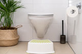 Hvis toiletsædet er for højt til, at du kan gøre det, kan det være en idé at købe en skammel, som dine fødder kan hvile på, så du sidder korrekt.